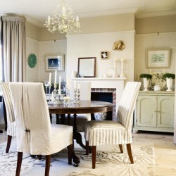 Mirrored walls or mirrors over mantelpieces are beneficial in a dining room because they give the perception of doubling the amount of food.