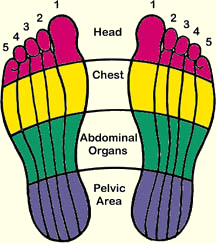 Zones are distributed up the body like slices, and when you work on the feet, you are automatically working through the whole of the human body. The principle is that, within these zones, energy runs up and down between all the parts of the body.